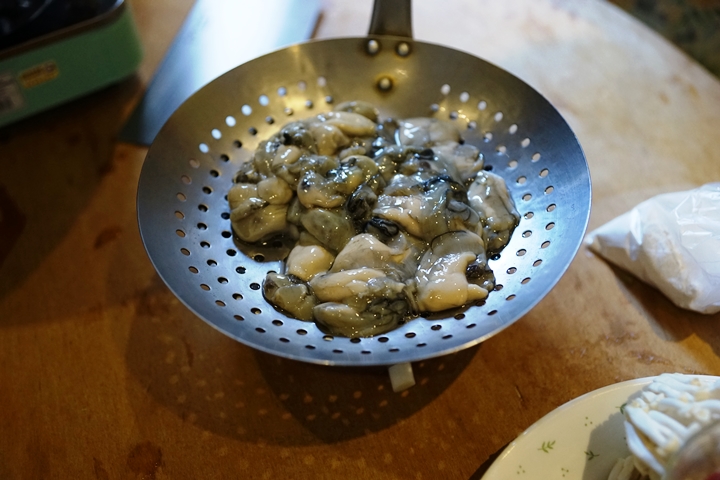 材料: 生蚵(牡蠣)1/2斤 調味料: 酒1大匙 |